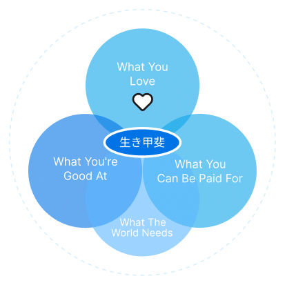 means “reason for being” — the intersection of what you love, what you’re good at, what the world needs, and what you can be paid for.